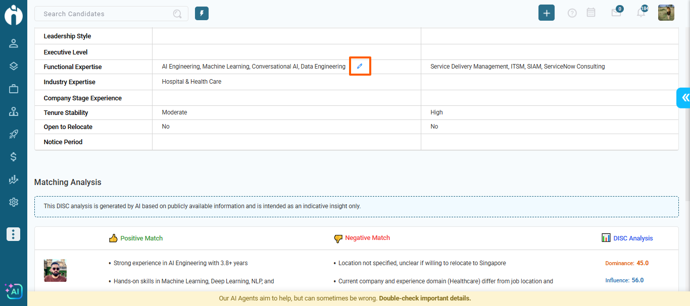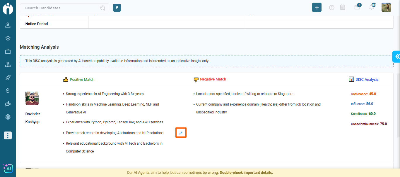 You can now easily edit specific details in the Candidate Data Generated by Agent.