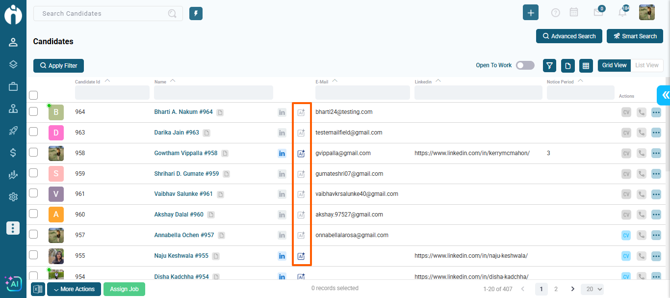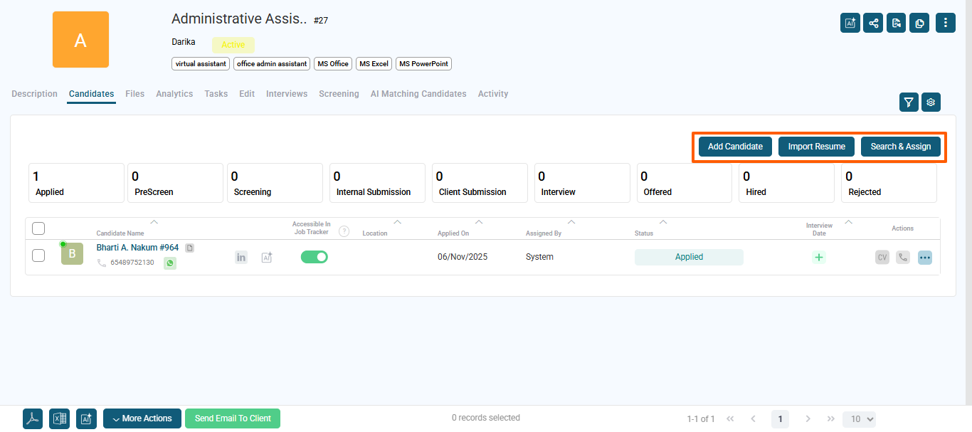 Add candidate, Import Resume, Search & Assign - These options will now always be visible, even when candidates already exist in the list.