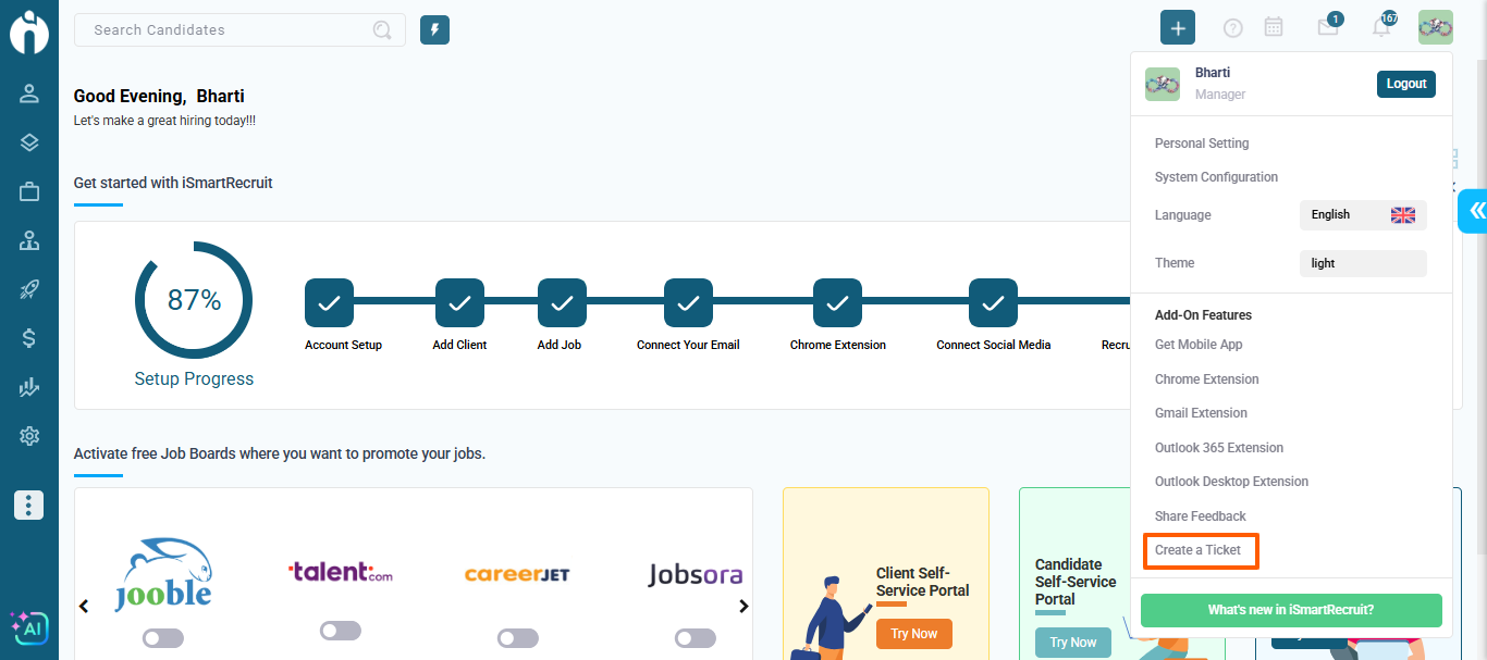 A new “Create Ticket” option has been added to your profile menu. From here, you can quickly submit a support request with the following details: